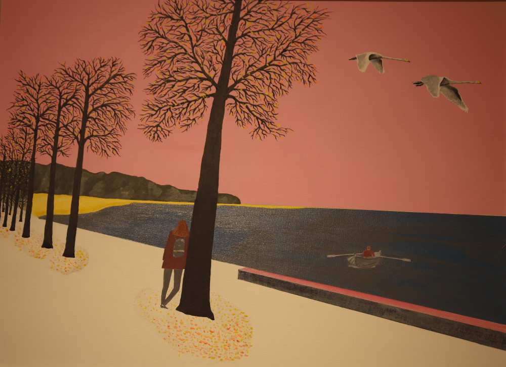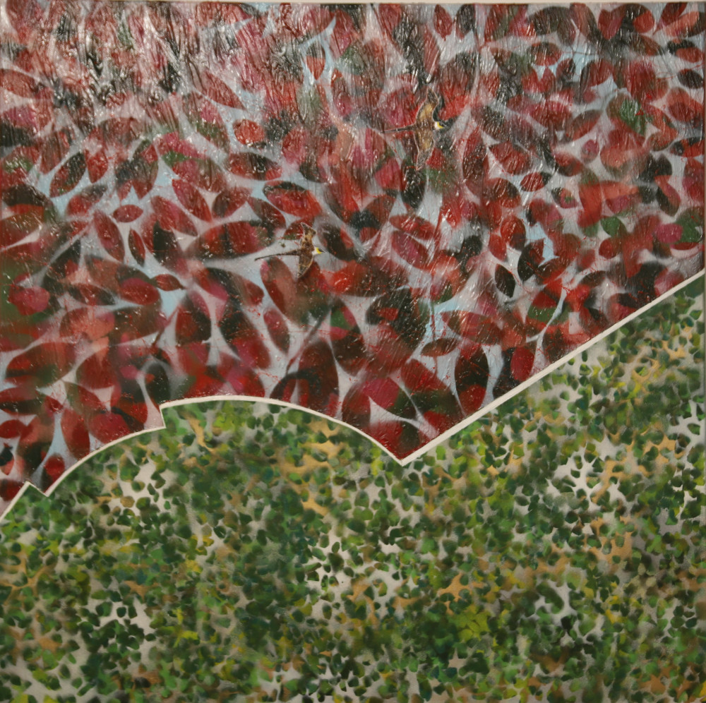 Jarmo Nieminen is hihetetlen lendülettel és energiával igen rövid idő alatt nagyon gazdag életművet teremtett. Alkotásaira jellemző a ritmus, a dinamika és a részletgazdag harmónia. Érdekes módon az ő képein is feltűnik a madár motívum, éppúgy, mint Györkös Mányién. Ez ornitológiai ismeretei miatt nem meglepő, de talán éppen ezek a különleges, szárnyas, levegőt metsző lények tudták leginkább megfogalmazni azt az átváltozást, amely 2017-ben kezdődött, és amelynek eredményeképpen most láthatjuk ezt a kiállítást.