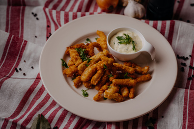 Hozzávalók: A panÃrozott pacalhoz: 60 dkg elÅ‘fÅ‘zött, darabolt pacal; a pácléhez: 1 fej hagyma, 1 fej fokhagyma, 3–4 babérlevél, szemes bors, 2 citromkarika, só, diónyi gyömbér; a mártogatóshoz: 5 evÅ‘kanál kukoricakeményÃtÅ‘; a sörtésztához: 2 tojásfehérje, 5 evÅ‘kanál kukoricakeményÃtÅ‘, 2 dl sör, só, bors; a panÃrozáshoz: 18 dkg pankómorzsa (japán zsemlemorzsa), 1 kiskanál szárÃtott élesztÅ‘, 1 kiskanál sütÅ‘por, 1 kiskanál kakukkfű, 1 kiskanál pirospaprika; a sütéshez: 2 dl olaj; a tormamártáshoz: 4 evÅ‘kanál ecetes torma, 2 evÅ‘kanál tejföl, 2 evÅ‘kanál krémsajt, 1 kis csokor petrezselyemzöld; a majonézhez: 1 nyers tojássárgája, 1 kiskanál mustár, 1,5 dl olaj, 1 kiskanál citromlé.