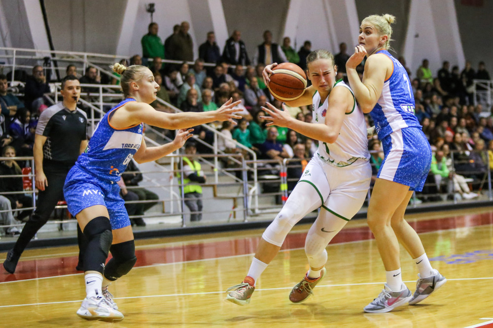 A csapathoz a napokban csatlakozó Emily Potterrel a kezdÅ‘ ötösben indÃtotta idénybeli elsÅ‘ hazai Európa-kupa-mérkÅ‘zését a Sepsi-SIC, és a találkozó elején látszott, hogy ez szokatlan felállás a zöld-fehérek számára. A 8. percben Mérész duplájával vezetett a szentgyörgyi gárda (12–10), ám a vendégek a játékrész végére átvették az irányÃtást, és egy ponttal megnyerték az elsÅ‘ negyedet (12–13). A második szakaszban a szekszárdi volt a jobb csapat a pályán, ám a 16. percben Davis kosarával kiegyenlÃtettünk 19-re. A folytatásban is ádáz harc folyt minden labdáért a parketten, azonban a pontosabban célzó Tolna vármegyei alakulatnak sikerült megÂlépnie (21–27). A nagyszünethez közeledve sem csökkent a párharc tempója, és Zoran Mikes lányai hatpontos hátrányban vonultak az öltözÅ‘be (23–29).