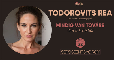 Todorovits Rea író, közösségépítő, a Glamour rendszeres szerzője és elismert előadó Mindig van tovább – Kiút a krízisből című előadását hozza el Sepsiszentgyörgyre ma 19 órától az unitárius remplomba a MUKKK Ifjúsági és Kulturális Egyesület szervezésében. A