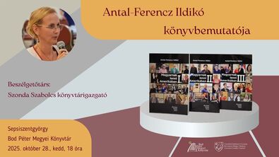 SEPSISZENTGYÖRGY. Ma 18 órától kerül sor Antal-Ferencz Ildikó közgazdász és szabadúszó újságíró Magyarnak lenni Amerikában című háromkötetes interjúkötetének bemutatójára a sepsiszentgyörgyi Bod Péter Megyei Könyvtárban. A rendezvényen a szerző beszélgetőtársa Szonda Szabolcs könyvtárigazgató.