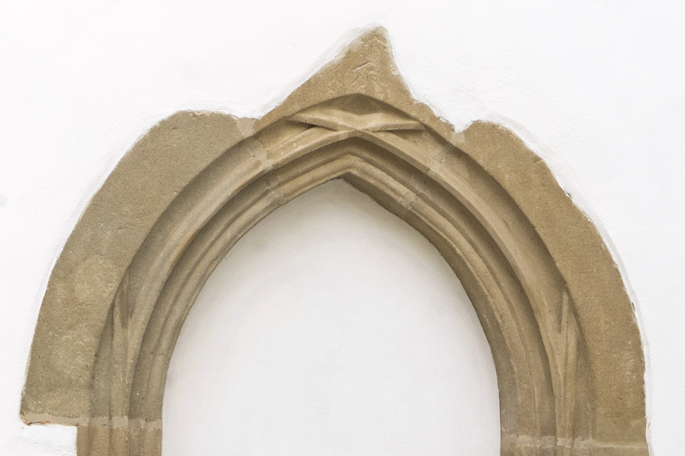 A templom déli oldalán egy csúcsíves záródású, faragott ajtókeret látható, amelyet valószínűleg akkor falaztak be, amikor a keleti oldalon néhány méterre egy kisebb épületet emeltek. Ennek a portikusznak a déli oromfalához ragasztották a harangtornyot. A templom északi oldalán egy egyenes záródású, elfalazott kőkeret található, amelynek szemöldökköve mesterjeggyel van ellátva. Eléggé vitatott, hogy mesterjegy-e vagy rovásos emlék. Az S, T, N karakterek egyértelműen felismerhetőek mind ezen, mind a déli kapu csúcsán. A templom déli oldalán, a mellékhajótól nyugatra befalazott bejárat látható. A keret fölött feketével festett magyar nyelvű felirat olvasható: „ALKODGYÁL AZ TE SZÁDDAL ÉS NE SIESSEN A TE ELMÉD VALAMIT SZÓLLNI ISTENNEK ELŐTTE.” Ez volt a templom főbejárata, mielőtt megépült volna először a szószékkel szemben lévő épületrésze a karzattal (a négyzet alakú alap arra enged következtetni, hogy eredetileg ez a rész toronyalapnak is épülhetett), majd a torony.