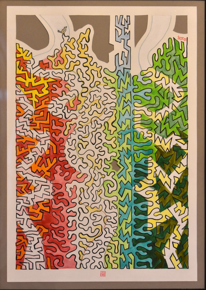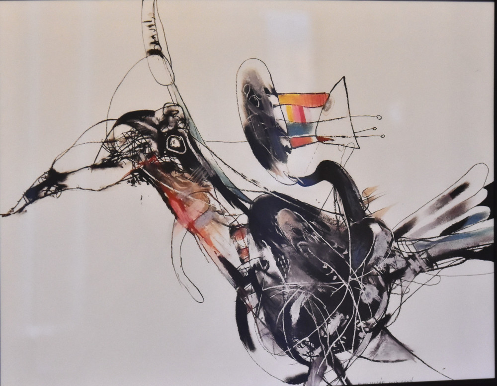 Bartha Árpád, a tárlat díszmeghívottja Rejtett gondolat című, sajátosan megoldott egyvonalas grafikájával ejti ámulatba a közönséget, míg Bartha Bíborka építész-grafikus a védjegyévé vált építkező nyomataiból, kollográfiáiból hozott egy munkát. A napokban 85. születésnapját ünneplő Csutak H. Levente kovásznai születésű művészpedagógus, grafikus és portrétista nagy méretű, precízen kimunkált, Jókai 200 című tusrajzaival dominálja a teret. A Kecskeméten élő, de évről évre visszatérő Damó István grafikus és illusztrátor ezúttal is egyéni hangvételű, vegyes technikával készült, eredeti nyomatokat küldött.