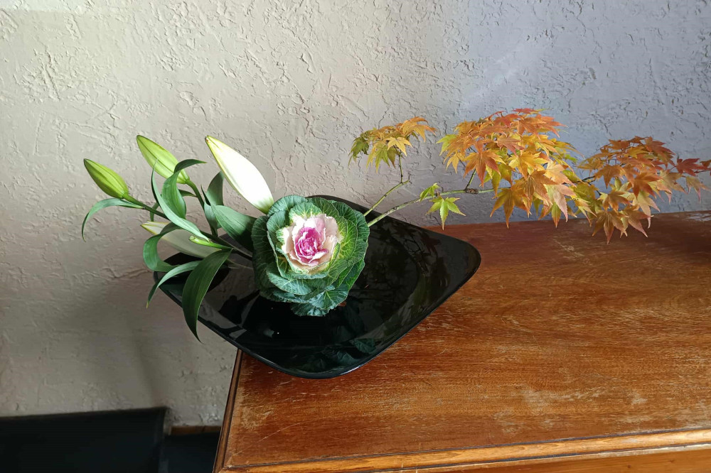Napsütéses őszi napon, októberi szombaton a sepsiszentgyörgyi Kónya Ádám Művelődési Ház udvarán és termében szemet-lelket gyönyörködtető ikebanakiállítás létrejöttének voltak szemtanúi mindazok, akik kíváncsiak voltak a japán virágrendezésre. Évszakot idéző Weöres Sándor-verssor – őszi éjjel izzik a galagonya ruhája – volt a mottó, ami mentén a Kiss Béla Ikebanakör lelkes, elkötelezett kis csapata Hubbes László Attila vezetésével újból felvillantotta azt a művészi értéket, ami a múló időben a pillanat szépségének hódol.