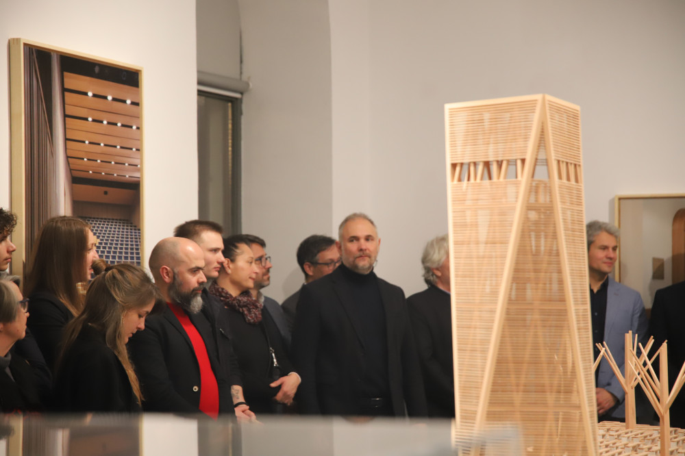 A kedd esti megnyitón a Robert Gutowski Architects építésziroda több építésze is jelen volt, képviseletükben Bársony Adrienn köszöntötte a közönséget. „Építészeti kiállításunk makettek és fotográfiák segítségével enged betekintést a téralkotás művészetébe – hangoztatta –, a kreatív gondolkodásba és a koncepcióból formává váló építészet világába. Ezek az alkotások nem csupán tárgyak, hanem gondolatok, víziók, ember és tér találkozásának lenyomatai, amelyek elgondolkodtatnak, inspirálnak és érzéseket ébresztenek.” Mint fogalmazott, Sepsiszentgyörgyön mindig otthonosan érzik magukat, ez az otthonosság nem véletlen: munkatársuk, Kovács Hunor László Csernátonból származik, és valahányszor Erdélybe érkeznek, családja „nyitott kapukkal és nyitott szívvel fogad bennünket”.