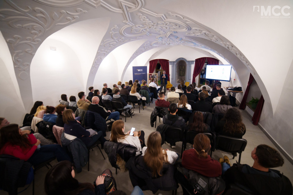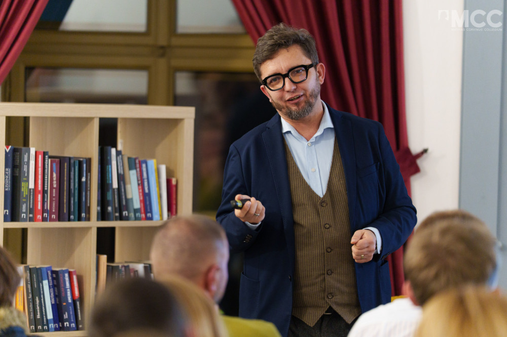 Az előadó elmondta: hobbiból bontatlan Lego-játékokba is befektet. Fotó: Facebook / Mathias Corvinus Collegium - Erdély