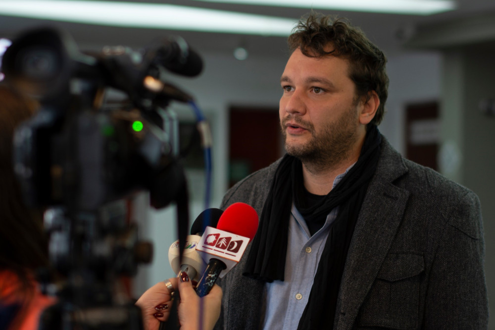 Albu István interjút ad a Gyergyó TV-nek. Fotó: Facebook / Albu István
