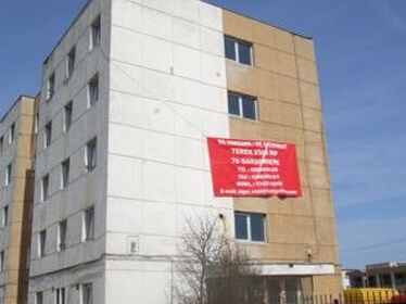A kézdivásárhelyi csavargyár irodaépületén és a négyszintes tömbházon óriásplakátok hirdetik, hogy irodahelyiségek bérelhetők, illetve a legényszállás hetven lakrésze és 2300 négyzetméteres telek kiadó vagy eladó.