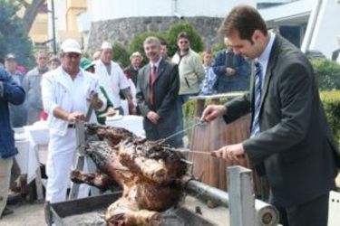 És másnap délben, mikor már sötét felhők, hideg és eső helyett ragyogó napsütés, vígan szóló népzene és ínycsiklandozó illatok fogadták a Park Szálló elé érkezőket, csak a kóstolás maradt hátra: az élősúlyban még 250 kilós ökörből a sütés, forgatás után ugyan már csak 140 kilogramm maradt, az ízek öröme azonban pótolta a mennyiségi visszaesést. Nem csoda hát, hogy összegyűlt az ember nyála a nyárson sült ökör láttán, Barta Ernő szakácsmester neve pedig afféle garanciát is jelentett, hogy amit látnak, szagolnak, ízlelnek, nem hétköznapi eledel ám.
