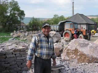 A kőfaragás Újfaluban most kisipari szinten működik. Több családi vállalkozás vásárol fel faragásra-alakításra alkalmas követ. A kőfaragó űzi mesterségét, melyet valahol, valamikor a kőbányákban tanult meg, alakítja-faragja a terméskövet, piacot szerez magának, és értékesíti. Bukurás Kálmán (képünk) egy a számos újfalusi roma közül, aki a bányában tanult mesterségét gyümölcsözteti. Rozin Sándor magánvállalkozó alkalmazottjaként burkolat- és szegélyköveket készít a málnásfürdői Botos-kőbánya kiváló nyersanyagából. Hisszük, hogy a Háromszéken egyedülálló, A kő útja elnevezésű állandó jellegű helyi kiállítás, melyet a tavalyelőtti falunapon mutattak be, újra látogatható lesz, hogy szobrot kap majd Fejér Ákos is Újfaluban, megmentik az enyészettől a regrutalocsolót, levédik székely termékként a rakottágat. Így látni mindezt székely szemüvegen át!