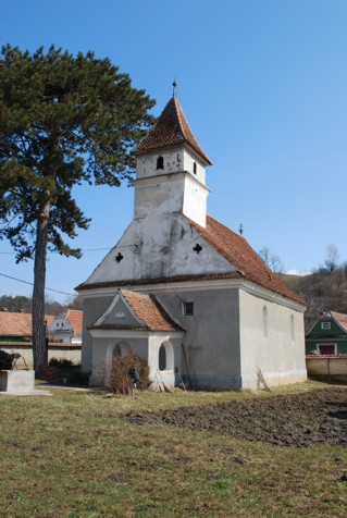 Az 1958-ban épült görögkeleti templom ott áll a hegy lábánál, védőszentje Nagyboldogasszony. Lelkészét nem találtuk ott: nem lakik itt — mondta Anicuţa, a mindenről tudó erősdi boltos asszony és a bolt előtt téblábolók —, csak hét végén jön ide. Annak is négy gyermeke van, mint a magyar papnőnek, de elment a víz a kútjából, s az iskoláztatás miatt máshova költözött. Azt is megtudtuk, hogy a régi, lebontott román templom 1903-ban épült.