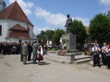 Ezt követően a tömeg a főtéren álló Gábor Áron-szoborhoz vonult, ahol gidófalvi és gelencei hagyományőrzők álltak díszőrséget. A Kelemen Antal karnagy által vezényelt harmincéves rétyi fúvószenekar akkordjaira elsőként Füzes Oszkár, a Magyar Köztársaság bukaresti nagykövete és Dimény Zoltán polgármester koszorúzott, helybeli és határon túli küldöttségek helyezték el a kegyelet koszorúit a szobor talapzatán, majd Máthé Ferenc szentszéki tanácsos, római katolikus plébános és Raff Róbert református szórványlelkész mondott egyházi áldást. A székely himnusz eléneklése után a több száz fős tömeg a rétyi fúvósokkal az élen a Gábor Áron-emlékház és ifjúsági fogadó udvarára vonult, ahol a megemlékezés második része a Szózat előadásával folytatódott. Elsőként vitéz Khell Ödön, az alapítvány elnöke köszöntötte a határon innen és túlról érkezett vendégeket, meghívottakat, többek között Füzes Oszkár nagykövetet, a hódmezővásárhelyi és tótkomlósi küldöttségeket, a Johannita Lovagrend tagjait, a Budapestről és Györgyből érkezett magánszemélyeket. Az elnök azt is elmondta, hogy a felavatásra kerülő három kopjafával azok előtt tisztelegnek, akik valamilyen formában hozzájárultak Gábor Áron alakjának népszerűsítéséhez, köztudatba juttatásához.