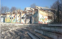 „Ilyen Csíki negyedi legelőhöz hasonló puszta fogad a városi stadionban is, ahol valamikor labdarúgó-edzőpálya volt, bütüjében pedig egy épülő edzőpálya nyomaira, a lebontott kakasülő (a kivételes elvtársak lelátója — szerk. megjegyzés) maradványaira, na meg a házépítéshez szükséges betonelemekre lehet bukkanni. Ezt látogatta meg a múlt hét végén a Nemzeti Sportügynökség főnöke és kísérőcsapata (köztük volt Grama úr is, aki a minap oly hevesen kitört ama bizonyos sportcentrum ügyében — szerk. megjegyzés). Azt mondják, nemes szándékkal: ide akarják építeni az új fedett műjégpályát, állítólag a Hargita megyei Kurkó János és a város közreműködésével..."