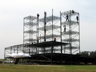 Az Óriáspince-tetőn Háromszéken soha nem látott méretű fémvázas színpad építéséhez kezdett egy bukaresti vállalat, amely a tengerparti nagyrendezvények (Mamaia) vagy a brassói Aranyszarvas lebonyolításának a műszaki feltételeit biztosítja. A különbség azért lényeges: az Eresztevény—Maksa fölötti Lármafatetőn a hegy monumentálisabbá emeli az amúgy is impozáns építményt, s nem szorítja be semmiféle épület közé. A fémszerkezetű, előre gyártott elemekből összeszerelt építmény rácsszerű oldaloszlopai toronymagasak, a színpadnyílás 60 méter. Érdekes kérdés lesz, hogy Szörényi Levente együttese tartott-e koncertet ekkora magasságban s ennyire az ég felé emelt színpadon.