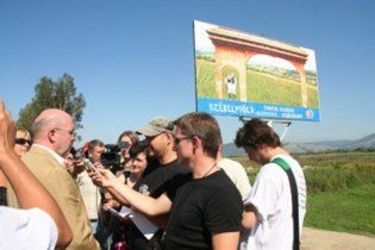 Nagy sajtóérdeklődés mellett, különlegesebb ünnepélyesség nélkül, szócsata közepette avatták fel tegnap Kökös határában a Székelyföld feliratú reklámtáblát.