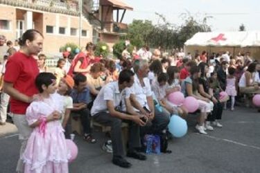 Valóságos vidámságudvarrá változott szombat délelőtt a sepsiszentgyörgyi Tanulók Háza két épülete közötti aszfaltpálya: száznál több gyermek és nevelőszüleik örvendeztek az együttlétnek.