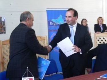 A Bagoly Miklós elnök, illetve Diósi László vezérigazgató (képünkön) által jegyzett okirat szerint a felek a kölcsönös előnyök érdekében együttműködnek az információcserében, az igények, illetve termékek és szolgáltatások megismertetésében. Az ünnepélyes aláírás után egyébként az OTP vezetője előadásában úgy értékelte, hogy a válságos időszak a vége felé közeledik nálunk is, a nehézségeket megoldó cégek pedig még erősebbek lesznek a piaci versenyben. (fer-)