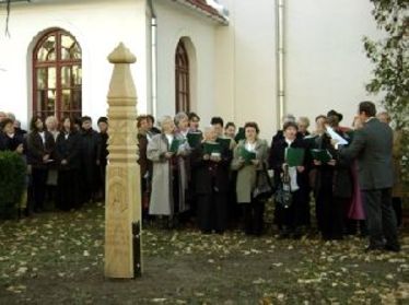 Az istentiszteletet úrvacsoraosztás követte, majd a templomkertben felavatták a nagy reformátor emlékére állított kopjafát (felvételünk), amelyet Kovács János faragott. Az ünnepi eseményen közreműködött a temesvár-belvárosi gyülekezet Szabolcska Mihály Vegyes Kara és a temesvári Bokréta citeracsoport tagjai. Tóth Dorottya és Kovács Boglárka temesvári diáklányok elszavalták Prohászka Ottokár Kő az úton, illetve Mészáros Sándor Reformátorok című versét. A megemlékezés nemzeti imánk eléneklésével zárult. (bodor)