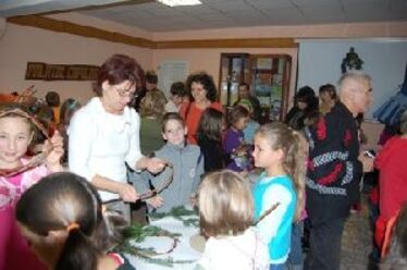 Izgatott gyermeki várakozás hangulata töltötte be a sepsiszentgyörgyi Tanulók Házának nagytermét, ahol a hosszú asztalok fehér papírterítőire illatos fenyőág, hajlékony drót, gyertya került.