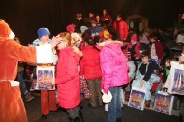 A Tamási Áron Színház Cimborák Bábtagozata tegnap Benedek Elek A szegény ember királysága című, Nagy Kopeczky Kálmán rendezte meséjével kedveskedett a gyermekeknek, a csomagokat a Rotary-feleségek állították össze, és Puki bácsi (László Károly színművész) vállalta azok átadását. (fekete)