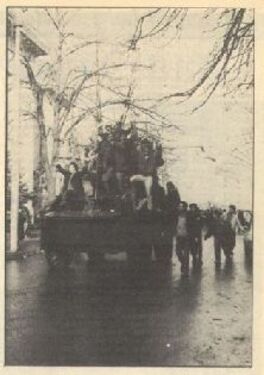 Végre beérkeztünk. A nagyáruház közelébe beszéltem meg a randevút Sylvester Lajossal, aki a sepsiszentgyörgyi demokraták szövetségének elnöke, újságíró, volt színigazgató. Igen ám, de később kiderült, hogy ők dél körül vártak bennünket. Telefonálgatni kezdtem a polícia telefonján. Megtudtam, hogy elénk jöttek katonasággal, de nem onnan, ahonnan mi érkeztünk, hanem Csíkszereda felé, a főúton. Csak álltunk hullafáradtan, és tán nem is tudtuk, mi történik körülöttünk.