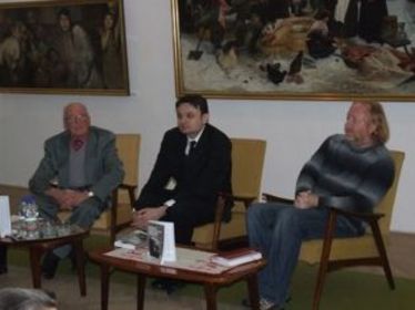 Sarány István, a Pallas-Akadémia Könyvkiadó főszerkesztő-helyettese (jobbról) a szerzők jelenlétében mutatta be dr. Balázs Lajos Amikor az ember nincs es ezen a világon. Paraszti nemi kultúra és nemi erkölcs Csíkszentdomokoson és dr. Deák Ferenc Loránd Temetkezési és halottas szokások Csernátonban és környékén című kötetét. Az utóbbi első kötetes szerző (középen) a közelmúltban Debrecenben megvédett doktori disszertációját jelentette meg könyv formájában. A találkozó végén mindkét szerző dedikálta frissen megjelent könyvét. (Iochom)