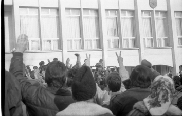A tömeg kulturáltan tüntetett. A fiúk néha kikérezkedtek a diszpozícióból, s bementek az épületbe. Két-három olyan kolléga érkezett a vezérkarból, akinek határozottan örvendtem. De egy olyan is, akinek nem. Állig felfegyverkezve, még gránátok is lógtak az oldalán. Erre nemcsak hogy nem volt szükség, de jogosan irritálta a békés tüntetőket. Közben ismerős arcokat is megpillantottam a tüntetők között. Üdvözöltük egymást jelekkel, és mindenki végezte a dolgát.