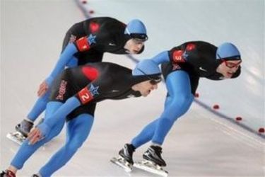 1. és olimpiai bajnok KANADA — Matthieu Giroux, Lucas Makovsky, Denny Morrison