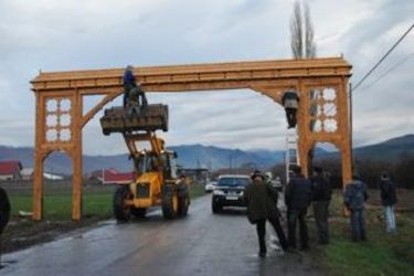 Április 1-jén sikerült felállítani a nagyobb méretű és sokkal díszesebb, új kaput, melyet Both László faragómester irányítása alatt Both Imre, Cseh Zoltán, Palkó Levente, Dezső Róbert és Ördög Sándor készített el mondhatni rekordidő, csekély három hét alatt. A cserefából készült díszkapu tizenkét méter széles és hat méter tíz cm magas — belvilága ötméteres —, s a hagyományos székely szimbólumok mellett a nagyközség öt testvértelepülésének címere is helyet kapott rajta. (iochom)