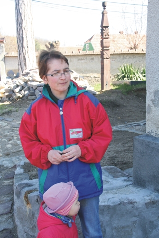 — B kategóriába sorolták a mi templomunkat — folytatta a lelkész. — Tavaly megkezdtük felújítását-restaurálását. Eltávolították falai körül a három évszázad alatt felgyűlt hordalék- és földréteget, mely kb. 70 cm-rel állt magasabban, mint a templom pádimentuma. Rendezték a terepet, kövezett gyalogjárókat és vízlefolyókat alakítottak ki annak a tervnek alapján, melyet nagy lelkesedéssel és hozzáértéssel állított össze Fekete Márta műemlékvédelmi szakember. Bordi Zsigmond Loránd régészeti feltárása megállapította, hogy nem volt régebbi templom a mai helyén. A munkálatokat csak közmunkával sikerült elvégeznünk, amelyből derekasan kivette részét minden aktív egyháztag. Kiadásainkba belepótolt a vallásügyi államtitkárság, ami épp csak ütötte a szükséges építőanyagok egy részének az árát.