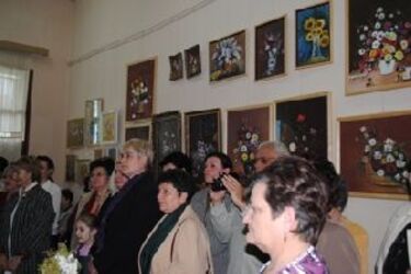 Tegnap délután a kézdivásárhelyi Nők Egyesületének tagjai és vendégeik: Vargyasi Lia, Vinkler Aranka, Nagy Gizella, Gábor Éva, Szabó Erzsébet, Para Mária, Könczey Éva, Kádár Ágnes, Bagoly Erzsébet, Györfi Ildikó, Opra Etelka, Fülöp Magdolna, Szász-Fejér János és a néhai Török Erna munkáiból festményeket, keresztszemeseket, gobelineket, varrottasokot és fényképeket állítottak ki mintegy hetven érdeklődő jelenlétében virág témával a Vigadó földszinti kiállítótermében.