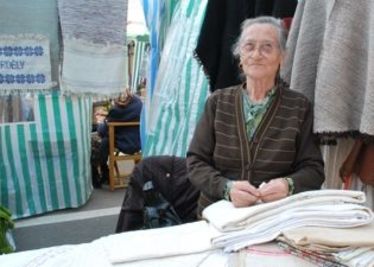 Visszafogott szőttesei — pamutból hímeseket abrosznak, terítőnek, edénytörlőnek, kenderből törülközőt, gyapjúból vállkendőt, padlószőnyeget készít — nemes egyszerűséggel pompáznak a kézművesvásár kavalkádjában, szépségük a hetvenhárom esztendős alkotó következetes, konok kitartásában is rejlik, aki nyugdíjas tanítónőként nem csak azt mondhatja el magáról, hogy immáron ő Varság legidősebb, kiválónak minősített szövőasszonya, s hogy a székely falu kisdiákjait okította betűvetésre évtizedeken keresztül, hanem hogy a hagyományos népi mesterségek továbbéléséért megtette, mi módjában állt. És ez nem is kevés, hiszen szövéssel azóta foglalkozik, ,,mióta a lábam eléri a lábítót"...