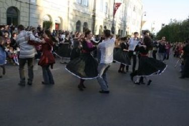 Ötven pár táncos, legkevesebb ötszáz-hatszáz néző, zene, jókedv — olyan hangulat a sepsiszentgyörgyi Korzón, mintha még nem értek volna véget a Szent György-napok.