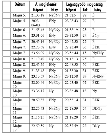 Aki szeretné látni ezt a „csodát", az találhat néhány időpontot a legközelebbi látható átvonulásokból a táblázatban.