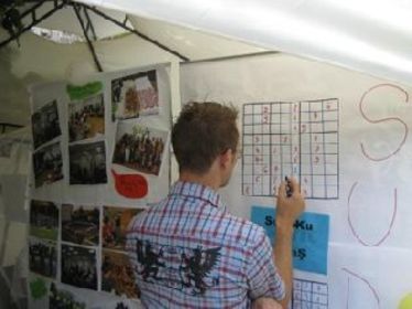 A HÁRIT-sátorban a háromszéki ifjúsági programokat bemutató fotókiállítás, óriás sudoku, kézművessarok és önkéntesek kávézója is várta az érdeklődőket. A programok mellett a sátorban több szóróanyag is népszerűsítette megyénk gasztronómiáját, kultúráját és turisztikai látványosságait. A háromszéki csapat sok új kapcsolattal és tapasztalattal tért haza, ezeket következő terveikben kívánják felhasználni. (demeter)
