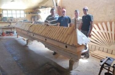 Gelence felső határában, a kőolajszondák felé vezető út szomszédságában díszes faragott kapu, s a szellős, tágas udvaron nyugvó famunkák hirdetik, a birtok fafaragóké. Persze, túl kell lépni a kapu mögötti, modern vonalvezetésű, élénk téglaszín házon, hogy láthatóvá váljék a zöld térbe telepített műhely. Nyugtató környezet, az életre kelő dombok tőszomszédsága okán is inkább természetközeli, mintsem kíméletlen ipari termelésre utaló. Meghittsége, visszafogottsága azt is példázza, kis léptékben a fafeldolgozás is ölthet emberibb arcot.