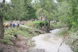 Bölönpatak felé közeledve úgy látjuk, mintha eltűnt volna egy híd. A patak mellett egy fiatal pár és egy idősebb nő tesz-vesz. Igen, elvitte a víz a hidat, valahol lennebb kell keresni — mondják. A bölönpataki híd előtt több autó áll: nem lehet továbbmenni. A martot tartó vastag betonelemek egymáson hevernek a hirtelen szélessé vált patakmederben. Iacob Drăgan háza kicsit magasabban fekszik, így nem érintette a baj annyira, de a kicsivel lennebb levő földje víz alatt, a megroggyant híd miatt szekérrel sem tudja megközelíteni.