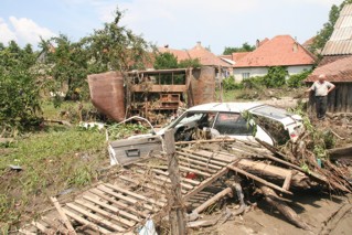 Soós Gyula szomszédai már a korábbi árvíz után annyira megijedtek, hogy amint elkezd jobban esni, menekülnek is el otthonról. Bucur Hajnalka meséli, a húgáék laknak itt, s amikor mindannyian visszatértek, szörnyülködtek: félméteres volt a víz a lakásban, tányérok úsztak a sárban, paplanok, ruhák, minden elázott, a parketta a víz felszínén lebegett, a felújított fürdőben a vécén keresztül, alulról tört fel a szennylé, majdnem elöntötte a fürdőkádat. Tehetetlenek voltak a pusztítással szemben. Vedrekkel merték ki az iszapot, az utca felőli sárga falú szobát teljesen kiürítették, a fal megrepedt, a laminált parketta az udvaron szárad. „Még most sem hiszem el, mi van, még a múltkor volt, ahogy volt, de ez most katasztrófa" — jegyzi meg Judit, Hajnalka testvére. A bútorok egymás mellé állítva a másik szobában, úgy vélik, azoknak is annyi, mert gyenge minőségűek, de elázott az ágy, a matrac, aludni a szomszédba kell menniük. Ürítik ki a lakást, száradjon ki, majd fertőtleníteni kell, hetek, hónapok múlva tudnak visszaköltözni. A ruhák nejlonzsákokba bugyoláltan hevernek a szobában, egy másik részük a gyermekholmiknak kint, szintén összecsomagolva, de már semmire sem használhatóak, nem lehet kimosni belőlük a sarat, magyarázza keserűen Hajnalka. A nyári konyhában még minden úgy van, ahogy az áradás után maradt: ijesztő mennyiségű sár, szanaszét heverő konyhai eszközök, flakonok. Így nézett ki a házban is, egész éjjel dolgoztak, s alig látszik. Nagy bánatuk, hogy a két kicsi gyermeket egyelőre nem tudják hazahozni, a kár mértékét legfennebb találgatják, mert egyelőre a legfontosabb tennivalókat kell elvégezni. Nemsokára azonban elhangzik egy gyors becslés: mintegy kétszázmillió, azaz húszezer új lejre becsülik. A lakásra nincs biztosítás, Judit munkanélküli, a múltkori áradás után még kölcsönpénzből vettek parkettát, meszeltek is, megpróbálták rendbe tenni az akkori rongálást. „Most kezdődhet minden elölről, de nincs miből."