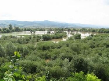 Aztán megérkezünk a teraszra. A kilátás a Feketeügy lapályára remek. Bebokrosodott egykori legelők és kaszálók úsznak az árban. Látványként tetszetős az egész, de az értéktelen fás növényzet is a pusztulást, egy kistérség degenerálódását jelzi.