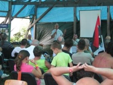 Alig nyitott tegnap a tábor, máris ,,súlyos" témáról értekeztek a központi előadói sátorban: az erdélyi magyarság demográfiai kilátásairól. A Kárpátia és az Ismerős Arcok előző esti koncertje után ugyan kissé akadozó volt még a hallgatóság koncentrálása, de azért nem volt baj az érdeklődéssel. A Népszámlálás 2011 című programpont keretében Csép Sándor, az Áldás Népesség Mozgalom elindítója irányításával voltak kénytelenek szembesülni a jelenlévők a nem túl szívderítő népesedési perspektívákkal. Kincses Előd ügyvédnek a marosvásárhelyi Fekete Márciusról szóló előadása a téma ismerői és a laikusok számára egyaránt érdekfeszítő volt. Megtudhattuk például, hogy Borbély László jelenlegi környezetvédelmi miniszter adta a román hatóságok kezére a Vatra Românească alapító iratait, amelyeket Kincses bízott Borbély gondjaira a ’90 márciusi események forgatagában.