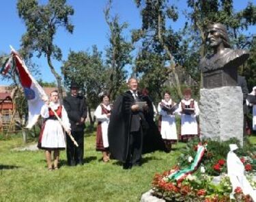 Szent István-mellszobrot, a Szent Király Szövetség ajándékát, Dienes Attila művész alkotását leplezték le szombaton Sepsiszentkirályban a református templom kertjében.