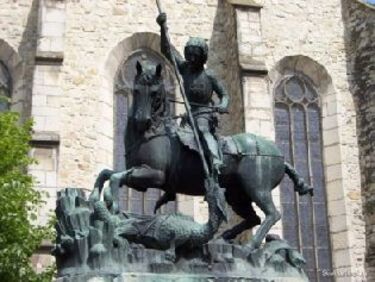 Na de vissza a természethez. A hatalom rossz természetéhez. A Farkas utcában a Mátyás-templom előtt, ebben a Mátyás-korabeli építményben szűk negyven esztendeje a kálvinista egyház utasunkat is befogadta — nem messze a helytől, ahol az első Nemzeti Színház állt, miként azt a Kolozsvári testvérek bronzba álmodták, Szent György megöli a sárkányt. A barbárok gonosz szimbóluma rászolgált, hogy végezzenek vele. Ám garabonciásunk álmában minden a visszájára fordult. Kolozsváron, de Erdély-szerte a sárkányok marnak a Szentgyörgyökbe. Igaz, védtelenek, páncélzatuk hiányos, önérzetük pajzsa le-lehanyatlik, belefáradtak a küzdelembe, a sárkányok pedig mindeközben egyre több fejet növesztettek.