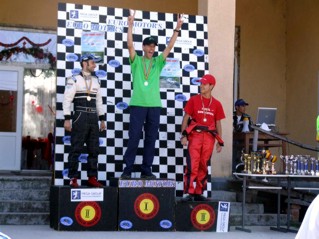 Marcus Andreoiu (lásd a dobogó legfelső fokán) a maga rendjén megnyerte a H/10-es (1600 cm3-es gépek) kategória mindkét futamát, s ezzel feljött az első helyre, az összetett versenyen viszont bronzérmes helyen áll. A H/10-es kategóriában határozott esélye van a bajnoki cím megszerzésére, hiszen tízpontos előnnyel áll az élen. Ha nem követ el a Csongoréhoz hasonló ,,bravúrt"... Na de ne fessük az ördögöt a falra...