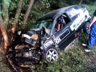 A nagy-nagy igyekezetben a surduc-i versenyszakasz első futamán Szabó Csongor az egyik kanyarban lecsúszott az útról, s 150 km/óra sebességgel egy fának csapódott (Csongi szerint az Opel randizott a fával, s közben nem vette észre, hogy kanyarban van). Szerencse a szerencsétlenségben, hogy Csongor megúszta az esetet könnyebb zúzódásokkal, a törött és elhajolt orrát egyenesbe hozták, a zúzódásokra megtette gyógyító hatását a Fastum gel , így aztán, mintha mi sem történt volna, hangulata visszazökkent a régi megszokott kerékvágásba, a mosoly újra kiült az arcára, s jó kedvvel megkezdte felkészülését az utolsó, mindent eldöntő versenyszakaszra, melyre Fehér megyében kerül sor október közepén.