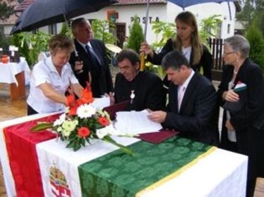 A Kecskemét melletti Balószöggel, fiatal telepítésű, rendezett, figyelemre méltó gazdasági potenciállal rendelkező nagyközséggel (repülőgyár, repülőtér, húsfeldolgozó, ultramodern idősotthon termálfürdővel!) véglegesített testvér-települési szerződést Mikóújfalu önkormányzata.