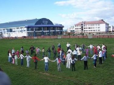 A résztvevők testükkel a béke nemzetközi szimbólumát rajzolták ki. Az egyesület felhívására több mint hetven felnőtt és fiatal vett részt a rendezvényen és kampányolt az erőszakmentességért, legtöbben a Turóczi Mózes-iskolából jöttek. Bálint Botond az egyesület egyik önkéntese felolvasta Ban Ki Mun ENSZ-főtitkár béke-világnapi üzenetét.(Iochom)