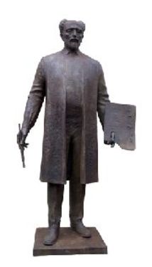 Sepsiszentgyörgy önkormányzatának szoborprogramjában idén Gyárfás Jenőnek terveztek emléket állítani. Vargha Mihály egész alakos szobrot készített a székelyek nagy festőjéről, hagyományosat és mégsem. Meditációból indul állványa felé, elmaradhatatlan köpenyében, egyik kezében ecset, másikban paletta. Arca derűs, festői mintázatú, de vonásaiban ott bujkál a mélabú. Ha letekintene odafennről, bizonyára szabadkozna, amiért neki szobrot állítanak, hiszen szerény ember volt, de talán kicsinykét örvendene is. Legfőképpen talán annak, hogy a róla elnevezett képtár előtt állhat. Akárha csak készülne belépni, az odabenn található életművét újabb zseniális alkotással gyarapítani.
