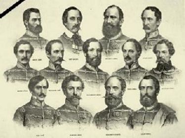 Őt követi a halálba a magyarországi német polgárság soraiból kiemelkedő Aulich Lajos, kinek utolsó gondolatai mély hazaszeretetről tanúskodnak: "Szolgáltam... és halálommal is szolgálni fogok! Forrón szeretett magyar népem és hazám, tudom, megértik ezt a szolgálatot." Lahner Györgynek a halála előtti percekben Krisztus keresztje és a bitófa közötti hasonlóság, valamint a közösségért hozott áldozat jut eszébe, úgy érzi, hogy "az isteni áldozat mellett" "törpe az én áldozatom". A szerb származású Damjanich János, a csaták bátor hőse e szavakkal búcsúzik az élettől: "Legyőztük a halált, mert bármikor készek voltunk elviselni azt." A horvát származású Knézich Károly így elmélkedik: "Milyen különös, hogy Haynau báró is keresztény, és én is az vagyok. Csak az ördög keverhette így össze a kártyákat!" Az osztrák gyökerű Pöltenberg Ernő úgy látja, hogy az igazságért küzdők vértanúhalálára "az ellenség dühös bosszúja" miatt került sor. Török Ignác, a polgári átalakulást támogató magyar középnemesség képviselője arról vall, hogy hamarosan az "Isten legmagasabb ítélőszéke elé" fog állni, de tiszta szívvel teszi, mert "mindig csak Őt" szolgálta. A magyar arisztokrata Vécsey Károly is isteni akaratot emleget: "Isten adta a szívet, lelket nekem, amely népem és hazám szolgálatáért lángolt."