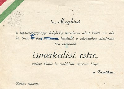 1940 — a második bécsi döntéssel városunkba helyezett katonai helyőrség ismerkedési estje