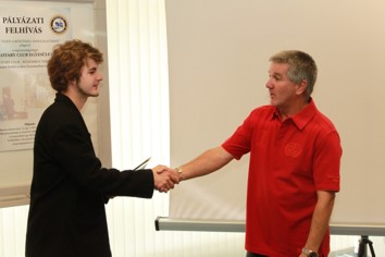 Pakot Áron mikós diákot Keresztes Zoltán Rotary-tag köszönti